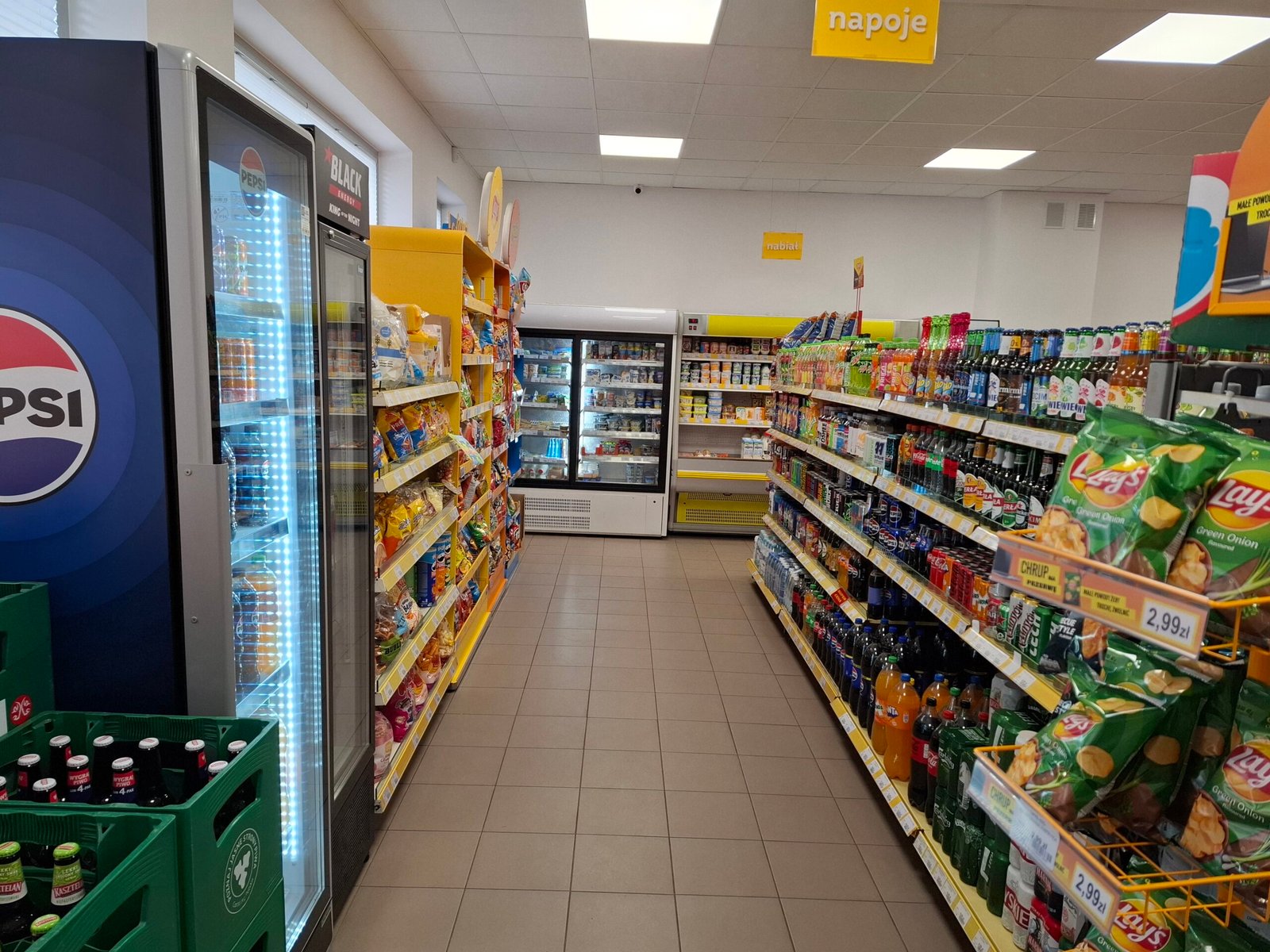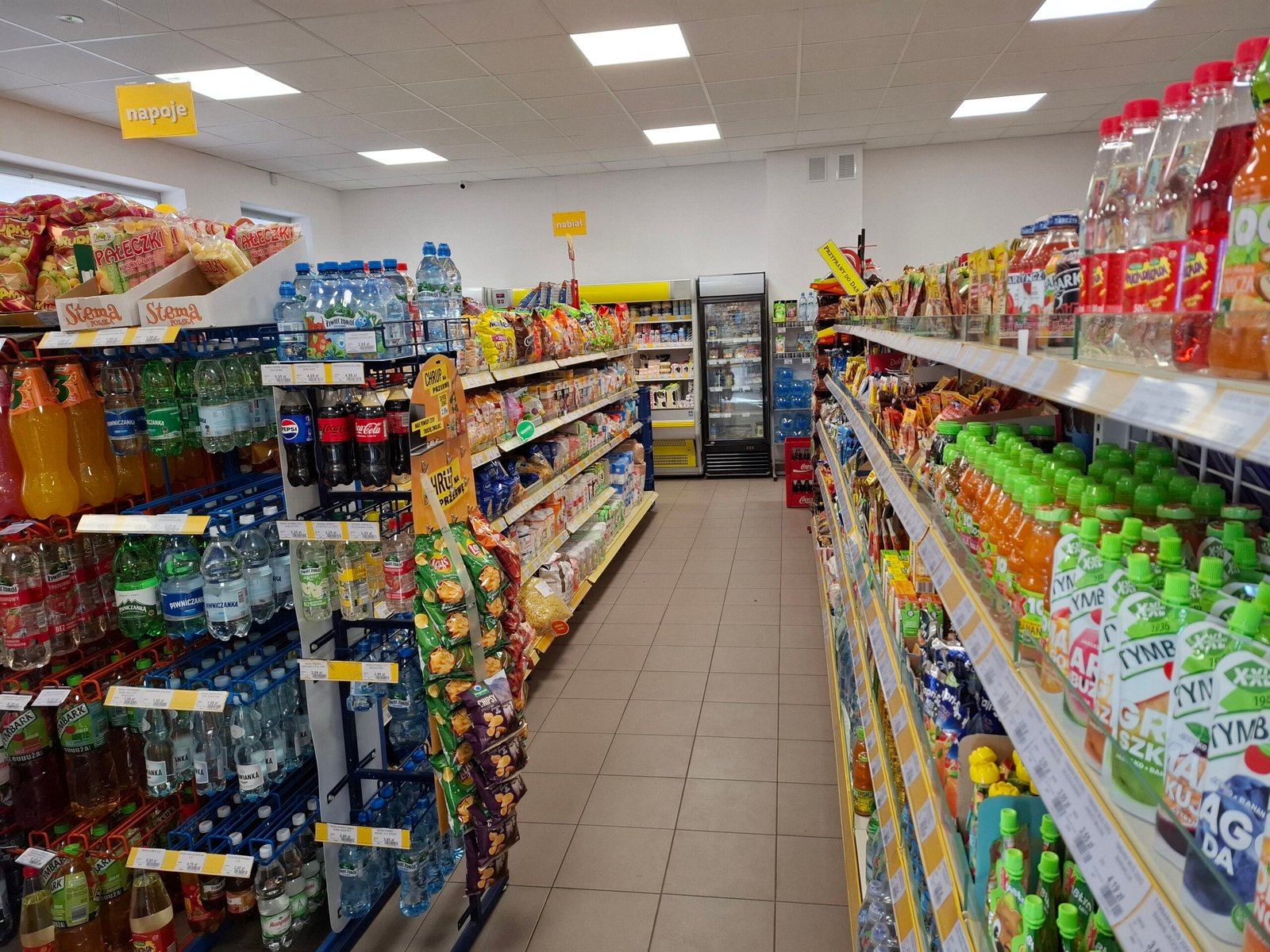 Bogaty wybór napojów – od wód i soków po napoje gazowane i inne produkty orzeźwiające na każdą okazję.